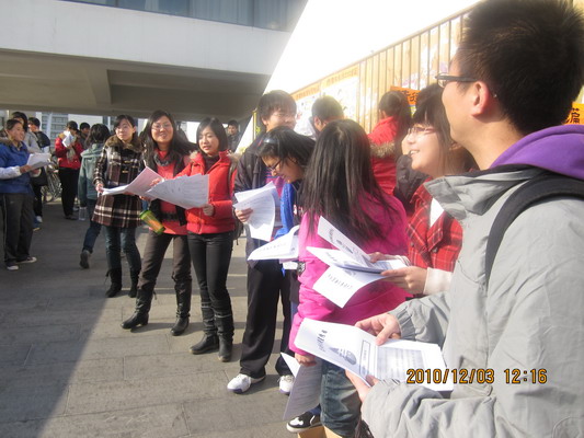 12月4日,法学研究会组织部分同学与昌平区沙河镇司法所工作人员一起在沙河镇沙阳路社区开展了“12.4”法制宣传进社区活动,寒冷的天气没有影响大家的积极性,同学们热情地向社区居民分发宣传资料,回答居民们提出的法律问题,场面十分热烈,宣传活动持续近3小时。