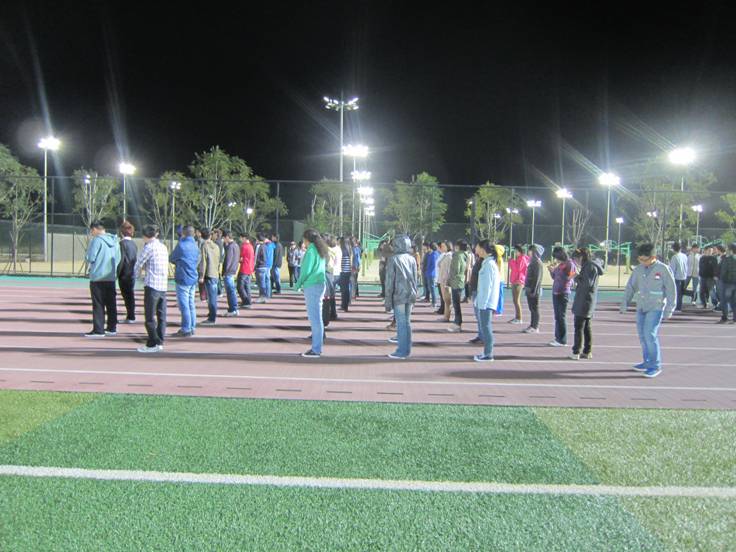 10月9日晚7点,公司在沙河校区大操场进行了第一次方阵训练。寒风凛冽中,tyc122cc太阳成集团几十位同学在方阵中艰苦训练,成果显著。本次方阵训练由tyc122cc太阳成集团团学文体部组织进行。