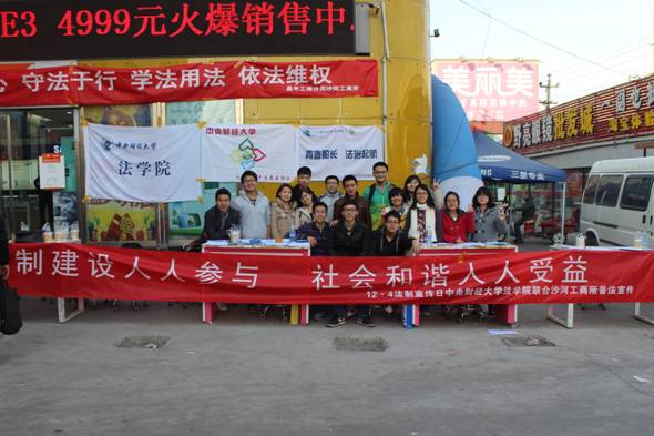 下午1时10分,普法宣传小组整装待发,在公司南门集合前往活动目的地。二十分钟的车程之后,普法宣传小组到达了沙河镇鑫之星市场。在相关准备工作做完之后,“12.4普法宣传活动”正式开始。
