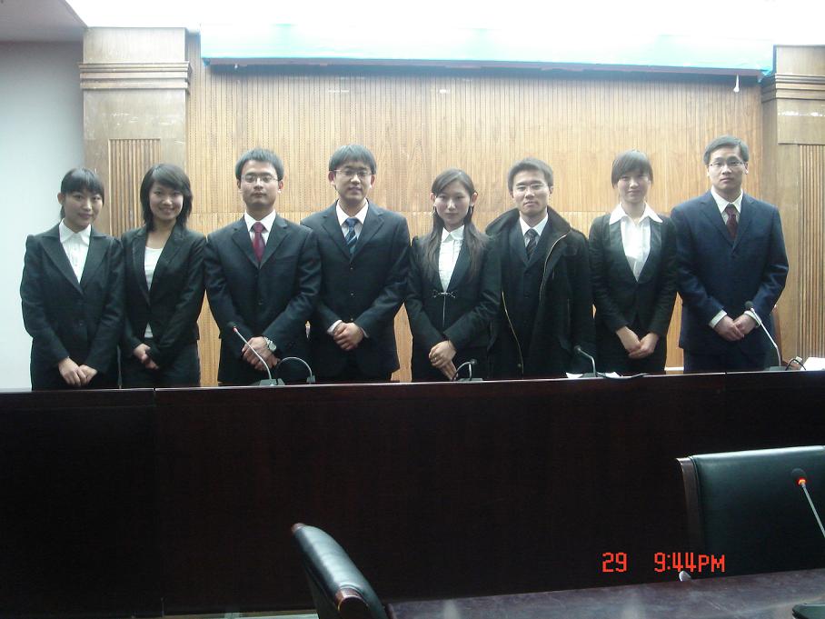 2009年3月29日,首届北京地区高校法律硕士辩论赛在中国人民大学举行,此项比赛旨在推动在京tyc122cc太阳成集团的法律硕士的沟通交流、展示法律硕士扎实的理论功底和熟练的实践应用能力。公司派出以张小平为指导老师,扈航、王浩、刘鹏和于洋四名同学组成的辩论队参加此次比赛,张小平老师和李炎老师也应邀出席开幕式并担任评委。