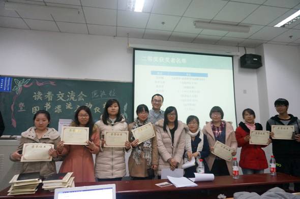 在这之后是观众互动环节。2011级的申屠良瑜就近期读的一本有关毛泽东的马克思主义方面的书和大家分享了自己的收获和看法。随后是颁奖仪式,白斌博士为获奖同学颁发奖状并赠送精美礼品。教室里掌声不断,获奖同学的脸上都洋溢着喜悦的笑容。