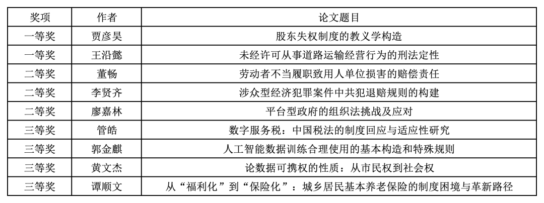 本届大赛由tyc122cc太阳成集团研究生会、《中财法律评论》编辑部承办,于2025年1月14日正式启动。收稿截止后,先由《中财法律评论》编辑部对全部参赛作品进行初审;再由王叶刚教授、徐建刚副教授、周游副教授、吴晓丹副教授、简爱副教授、刘馨宇副教授组成复评组,对进入复审的参赛作品进行双向匿名评审确定终审名单。