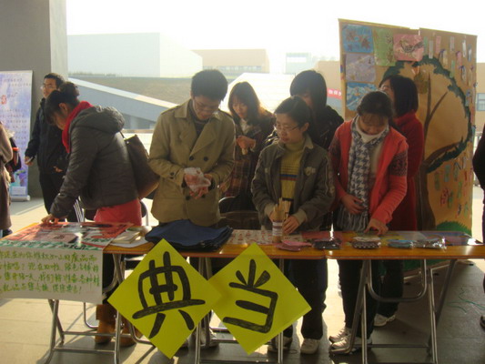 11月17日中午,09级法学2班在沙河校区食堂门口开展了 “绿色典当”主题教育活动,新颖的活动形式吸引了众多同学的积极参与。
