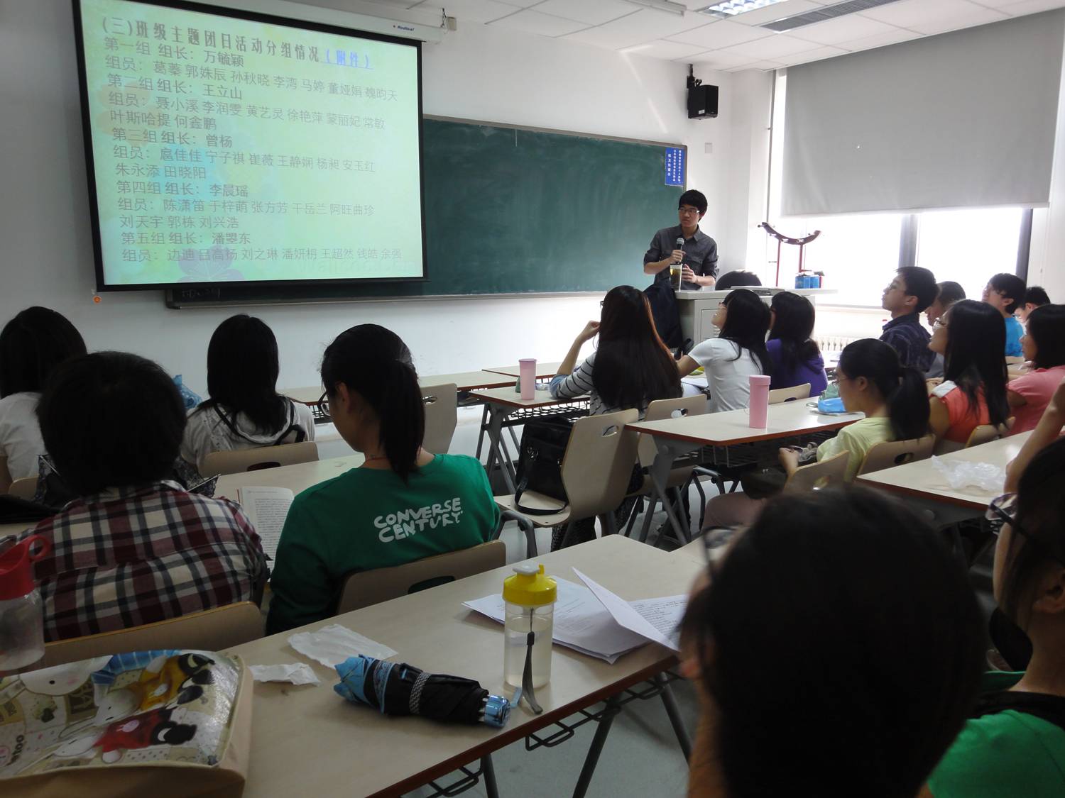 会上,团支部书记潘瞾东同学向同学们讲解了本次主题教育活动的有关事宜。我班活动的主题定为“弘扬北京精神 青春礼赞我唱响”,活动形式为创意LOGO设计和志愿服务两部分,全班同学们将分为5个小组,主要以小组形式活动。最终将把同学们思考感悟的成果汇集起来,续写新时代的“雷锋日记”。