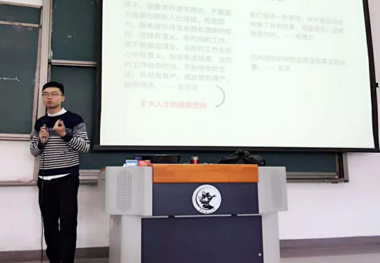 首先他谈到书籍主要可以分为“技、研、智”三类,即教科书、专业书、兴趣书,而平常所说读书正是偏重于对“兴趣书”的阅读,帮助同学们明确了“何为读书”。关于“读书选择”,周游老师针对信息时代电子阅读与纸质阅读两种阅读形态的优劣势进行了比较分析,勉励同学们既要学会利用碎片化的时间,但是更需重视深层次思考和体系化阅读,不要在知识被动输入中迷失,要主动积极探索知识与真理。之后,在此基础上,周游老师重点介绍了“如何读书”,周游老师从自己曾经在读书中走过的弯路入手,向同学们介绍了检视阅读和分析阅读两种阅读方法;同时强调要切实提高阅读兴趣,打破对高难度书籍选择的思维定式,诸如书籍翻阅、随机漫步等都是有趣的尝试;并明确了笔记的重要性,适应时代的需求,善用高效率电子工具也是增强员工阅读能力的有效举措。接下来,周游老师依据自己多年藏书的经验列出了判断好书的必备条件,对同学们产生了极大的启发作用,帮助同学们建立起“何为好书”的评判标准。最后,周游老师指出,功利性的阅读反而难以获得良好的效果,重在体会阅读的愉悦,体验字里行间的畅快淋漓,最终达到心中的平和与宽容,这才是“为何读书”的意义。周游老师勉励同学们通过系统学习,逐渐养成以读书为乐的良好习惯;在丰富知识储备的同时,不断增强个人气质与修养。