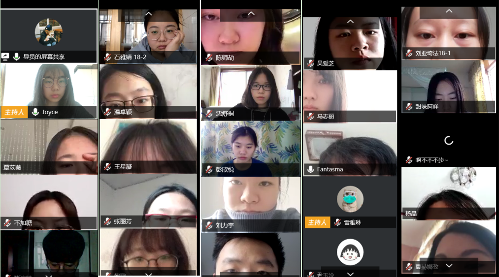 辅导员蒙广平老师、尹力沉老师、康馨元老师、张瑞佳老师和李紫仪老师也分别在班会中向同学们反复重申,在疫情没有完全解除以前,要继续按照“不离家”“不返京”“不返校”的要求,协调好居家学习和生活;同时要重视防控数据填报工作的严肃性和重要意义,认真对待每一次信息填报,为国家有序推进复产、复工、复学提供准确的数据支撑。