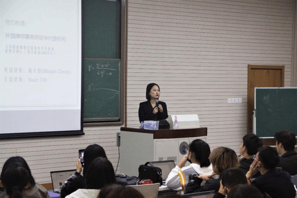覃莹员工围绕“国际律师事务所简介”、“国际律师事务所招聘要求”和“如何规划老员工活”三方面展开了本次讲座。讲座伊始,覃莹员工首先列出了国际著名律师事务所并对其进行了简单介绍。随后,她从内、外资所合伙人分红制度视角出发,分析了内资所与外资所的差异和利弊,引发了同学们对于两类律师事务所的深入思考。紧接着,覃莹员工表明在外资所就职能够获得完整的培训,而在内资所就职则能够及时获取更具挑战性的前沿案件。同时,她指出在工作制度方面外资所较为看重过程的规范化,而内资所则更注重结果的完成度。此外,覃莹员工还点明诉讼律师和非诉律师的区别主要在于能力要求的不同。在诉讼业务上,诉讼律师的业务核心在于对法律的解释,而非诉律师的业务核心则是在符合法律法规的情况下有目的地实现商业诉求的最大化。