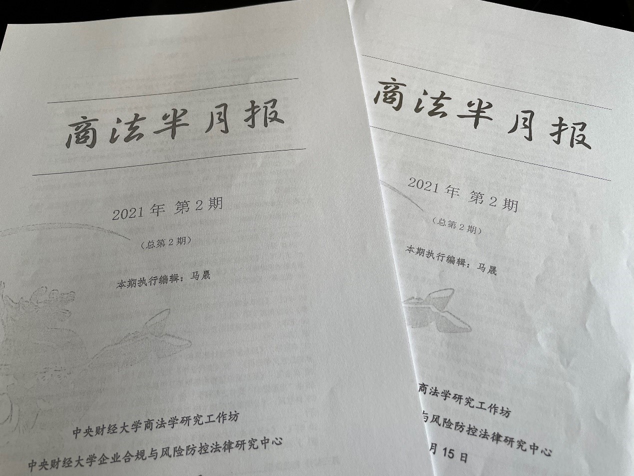 活动开始前,研究团队成员研究团队提前收集、阅读、筛选及整理文献和案例,并草拟了《商法半月报》2021年第2期,活动过程中向参与活动的同学们赠阅。