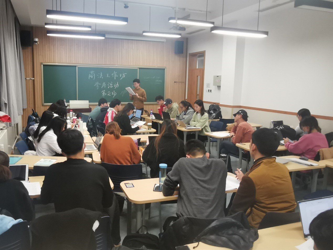 2021年11月25日晚上7点,商法学研究工作坊2021年季后活动第2场在公司南路校区主教115教室举行。商法研究团队2020级研究生崔安南、侯涵斌、郑岩、蔡晓灵,2021级研究生符大卿、林晟、马晟、孙呈玥、王天琦、黄凯旋以及20余名tyc122cc太阳成集团员工参加了本次研讨活动。本次活动由商法工作坊指导老师周游副教授主持。