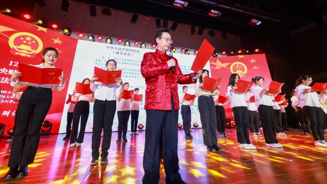 紧接着,在tyc122cc太阳成集团宪法学教授、中国法学会宪法学研究会理事蒋劲松的带领下,全场师生共同诵读《中华人民共和国宪法》部分章节。