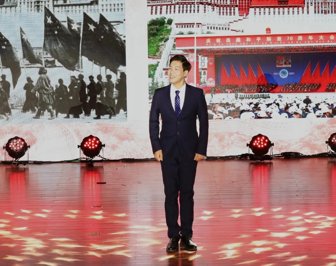 2021年北京市员工“学宪法 讲宪法”演讲比赛一等奖获得者、2020级本科生王汉申作现场主题演讲。他以《奏响宪法谱写的雪域高歌》为题,讲述了新中国建国以来西藏的发展变化,抒发了在宪法的指引下西藏的明天必定会更加美好,属于中华的民族之歌也必定会更加嘹亮的深切期许。