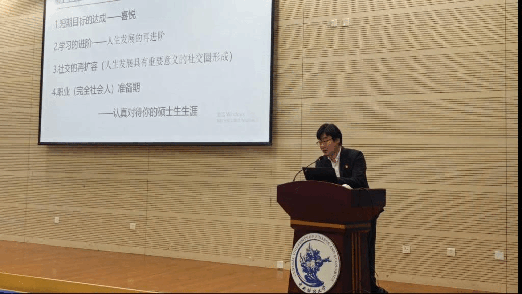 林剑锋书记围绕“认真对待研究生生涯”的主题,向 2023 级研究生新生们讲授了短期目标达成、学习的进阶、社交的再扩容和职业准备期四部分内容,并就硕士生生涯规划给出了建议。