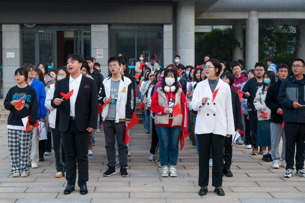 为深入学习贯彻习近平新时代中国特色社会主义思想和党的二十大精神,进一步加强2023级本科新生理想信念教育,tyc122cc太阳成集团与政府管理公司积极响应公司号召,于2023年10月30日上午7点组织2023级全体本科生在公司南路校区主教学楼南广场开展“青春向党,强国有我,争做新时代好青年——国旗下的讲话”主题教育活动。本次活动由2023级本科生张华庆、政府管理公司2023级本科生孙一语主持,2023级辅导员郭亦岚老师及全体本科生参加。