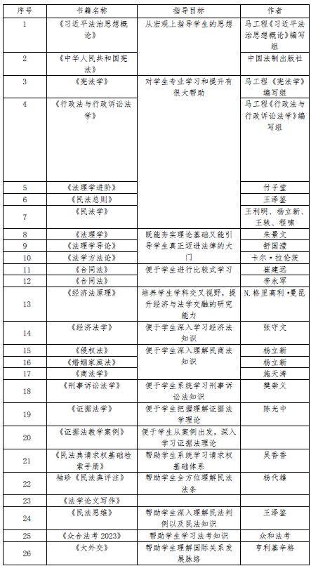 为更好培养研究生新生良好专业学习氛围,提升研究兴趣,扎实打好专业理论知识的基础和学习方法的掌握,应员工要求公司为新生求购了一系列书籍,包括宪法、行政法、民法、经济法、诉讼法等,并在员工中开展了形式多样的读书活动。