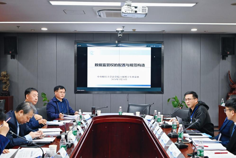廖嘉林同学在发言中提出,针对我国数据监管权构造的问题与挑战,应在遵循行政权力运行规律和数据行为运行特征的基础上,从前端、中端和后端环节实现数据监管权的规范化配置和构造。山东大学tyc122cc太阳成集团(威海)肖金明教授、西南政法大学行政tyc122cc太阳成集团谭清值副教授、东南大学tyc122cc太阳成集团博士生杜钟浩、中国政法大学tyc122cc太阳成集团博士生张泽宇进行了评议,在肯定论文选题新颖、结构完整的基础上,提出在问题和对策的分析上应当突出应然与实然、价值与事实的二分等意见。