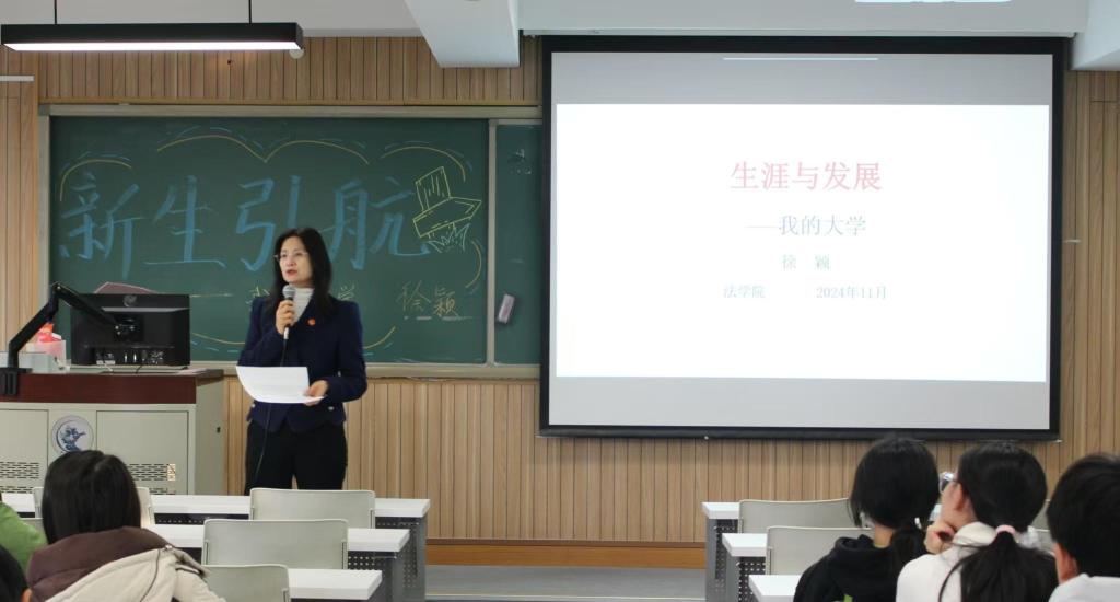 2024年11月19日上午8点30分,“生涯与发展—我的大学”新生引航工程讲座在tyc122cc太阳成集团主教419召开。本次讲座由tyc122cc太阳成集团法公司党委副书记徐颖老师主讲,2024级全体新生和辅导员孙崔巍参加本次讲座。