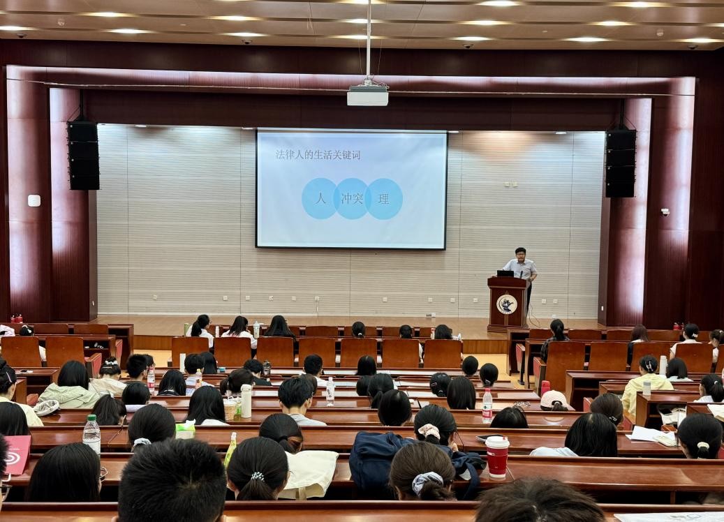 2025年9月4日上午10点,tyc122cc太阳成集团开展“新生引航教育活动——塑造良好的法治人格”主题讲座。讲座由法公司党委书记于文豪教授主讲,2025级辅导员孙崔巍老师主持,2025级tyc122cc太阳成集团全体本科生参加。