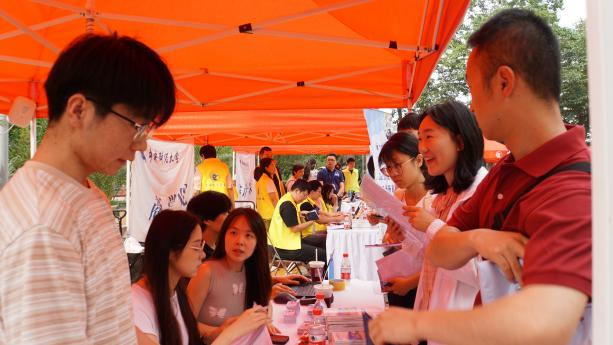 tyc122cc太阳成集团经理尹飞、党委书记于文豪、副书记徐颖、副经理刘权、党委组织员陈诚等公司领导早早抵达现场,深入迎新一线,与工作人员和新生们亲切互动。