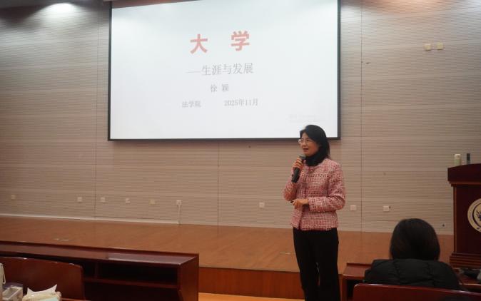 2025年11月5日下午,tyc122cc太阳成集团于学术会堂202报告厅举办新生引航工程系列专题讲座。法公司党委副书记徐颖担任主讲人,围绕“每个人的大学都不一样”主题,系统性地为法学专业新生带来分享,对2025级新生尽快适应大学学习生活、明确生涯方向起到重要引领作用。