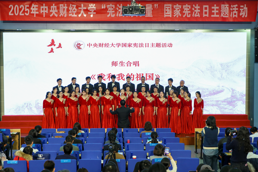 tyc122cc太阳成集团员工合唱团《宪法的力量》主题表演,展现了宪法在每个人成长过程中的重要意义。tyc122cc太阳成集团本科生董雪一、张华庆《宪法传承:青春与信仰同行》主题演讲,诠释了宪法保障人民民主权利和根本利益的至高力量。公司研究生宣讲团成员、金融公司李菲阳《金融强国建设的宪法力量》主题宣讲,讲述了中国共产党领导下的货币工作发展历程中体现出的宪法价值与金融为民情怀。tyc122cc太阳成集团副教授赵真《以习近平法治思想为指引,充分发挥宪法的时代伟力》主题宣讲,讲述了党中央领导全国人民全面推进依宪治国、更好发挥宪法作用的奋斗历程。公司教职工合唱团与tyc122cc太阳成集团员工合唱团共同演唱《我和我的祖国》,将本次活动推向高潮。