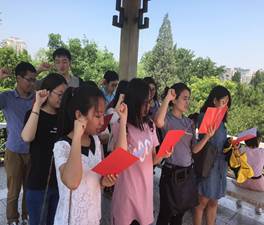 初夏的紫竹院公园郁郁葱葱,7月1日,2014级法学研党支部的党员、积极分子们一起来到紫竹院公园,参加“重温入党誓词,激扬红色梦想”的主题党日活动。本次活动的开展,是为了响应中共中央开展“两学一做”学习教育的号召下,发挥党支部的战斗堡垒作用和对全体党员的引导。