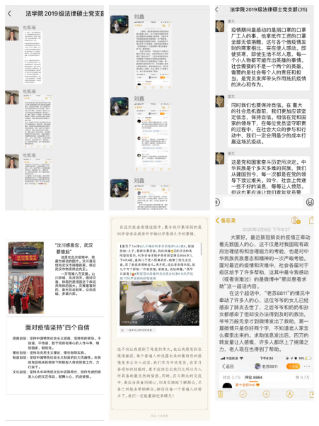 为深入学习贯彻习近平总书记关于疫情防控的重要讲话和指示精神,贯彻落实党中央、国务院关于疫情防控的各项决策部署,坚决贯彻坚定信心、同舟共济、科学防治、精准施策的总要求,坚决打赢疫情防控的人民战争,积极响应公司及公司的工作号召,2019级法律硕士党支部以多种形式开展“同心抗疫,共克时艰”主题党日活动。