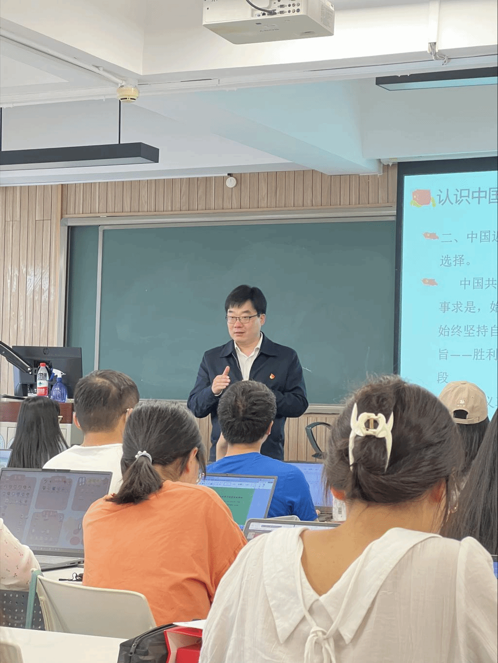 此后,林剑锋书记立足当下,指出应当如何理解我国发展进入了新的历史方位,即中国特色社会主义进入了新时代,比历史任何时候都要接近中华民族伟大复兴。中国共产党始终坚持道路自信、理论自信、制度自信和文化自信,带领全国各族人民团结一心,共同奋斗,恪守全心全意为人民服务的初心使命。随后,林剑锋书记深入讲解了中国式现代化的五大特征。