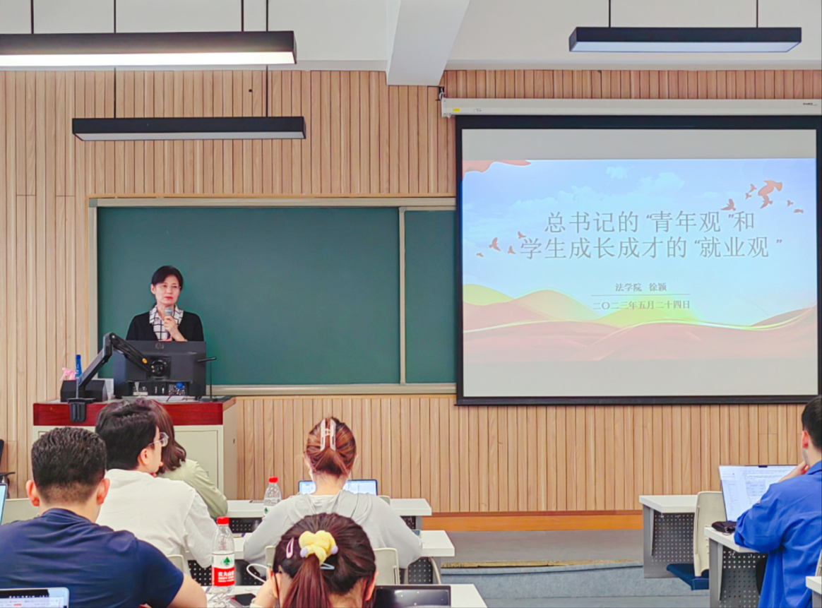 5月24日下午,法公司党委副书记徐颖在公司南路主教117,以《习近平总书记的“青年观”和员工成长成才的“就业观”》为题,为tyc122cc太阳成集团本科生党支部、2021级法律硕士(法学)第一党支部、2022级法学研党支部的师生党员讲授了一堂生动而深刻的主题教育专题党课。党课由本科生党支部书记张明华主持。