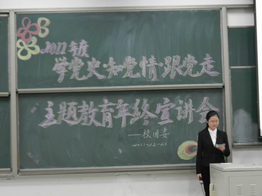 12月21日下午两点,公司“学党史,知党情,跟党走”主题教育年终宣讲、评审会在沙河主教110教室隆重举行,校团委相关老师及全校各公司(研究院)的团总支副书记参加了评审会,公司主题教育以鲜明的主题、丰富的内容、生动的形式和精彩的宣讲赢得了现场评委,最终被评为2011年度 “主题教育活动精品项目奖”,且综合评分居全校第二。
