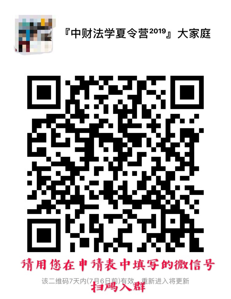 1 如确认入营,请以您申请表中填写的微信号,至迟在7月1日(周一)中午12时前申请加入营员微信群。后续通知将在微信群中及时发布。非入选本届夏令营的,请勿加入。我们会对入群人员的身份真实性进行核对。