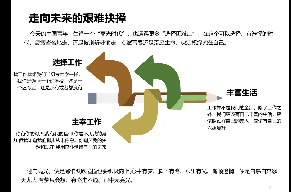 讲座临近尾声,程芳员工分享了比尔·盖茨的十句良言,希望对同学们的学习工作生活有所裨益。马克思曾说,“在科学上是没有平坦的大道,只有不畏劳苦,沿着陡峭山路攀登的人,才有希望达到光辉的顶点。”最后,她祝愿同学们在时代潮流中建功立业,谱写壮美的青春之歌。