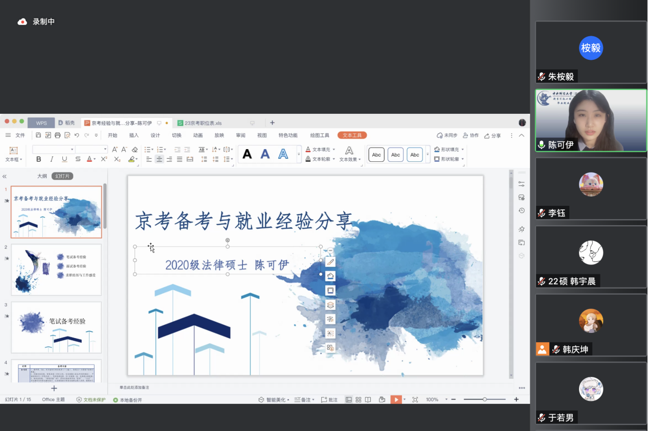 本次讲座,李钰、傅一鸣、于若男、陈可伊四位中财tyc122cc太阳成集团的优秀员工为大家带来了一场具体全面的经验分享,启迪更多中财tyc122cc太阳成集团学子学有所精、专业报国,用扎实牢固的专业知识为国家的法治事业做出贡献。