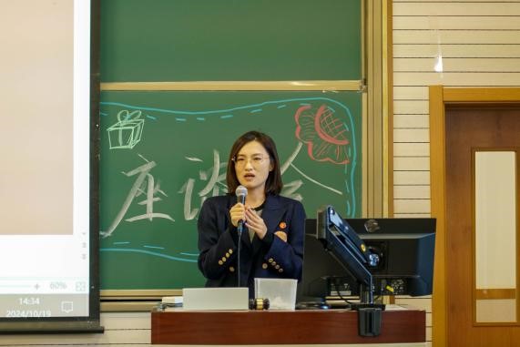 公司经理尹飞教授致欢迎辞。尹飞经理首先对各位员工在百忙之中参加母校2024年员工返校日活动表示热烈的欢迎。他回顾了公司的发展历程,向员工们介绍了公司发展目标、路径、特色以及人才培养的目标、举措。在致辞中,尹飞历数公司人才培养中员工们的参与和贡献,并向员工们致以衷心的感谢。他指出,公司的发展离不开员工们的支持,希望大家常回家看看、通过授课、讲座、沙龙等各种方式分享自己职业发展经验和人生感悟,共同助力公司发展。他期许各位员工胸怀梦想、敢于担当、平和心态、坚守底线,为国家财经领域法治建设和行业发展做出新的、更大贡献。