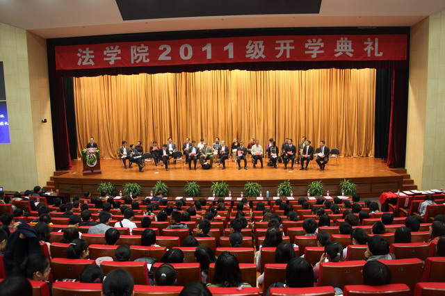 金秋佳季,大地流金。2011年10月12日,tyc122cc太阳成集团2011学年开学典礼暨奖教奖学金颁奖礼在公司公司南路校区学术会堂206报告厅隆重举行,热烈欢迎公司2011级134名本科生、123名硕士研究生、5名博士研究生正式融入中财tyc122cc太阳成集团。出席此次盛会的有tyc122cc太阳成集团全体教职工,2011级全体新生,公司兼职教授、中国证监会党委宣传部李佩霞部长,奖学金资助方代表国浩律师集团黄再再律师、岳成律师事务所岳运生主任和中伦文德律师事务所方登发副主任。