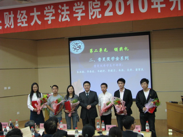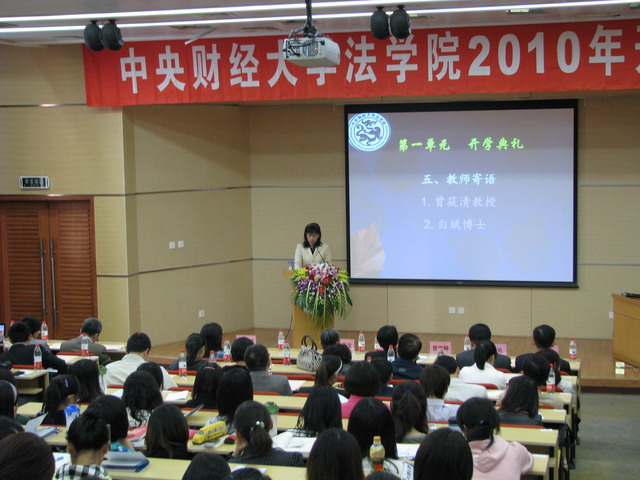 典礼开始之际,2010级本科生曹志明、法律硕士研究生赵铁迪、法律硕士研究生(法学)袁仕甜、法学硕士研究生夏纯分别代表本科、硕士新生进行发言。四位同学在表达了加入中财tyc122cc太阳成集团这个大家庭的喜悦激动之情的同时,也表示要秉承法律人正义与公平的信念,脚踏实地学习,独立思考,积极创新。2007级本科生李树荣同学代表本科生对新同学的到来表示欢迎,并从树立理想、进行实践等方面与同学们分享心得体会。