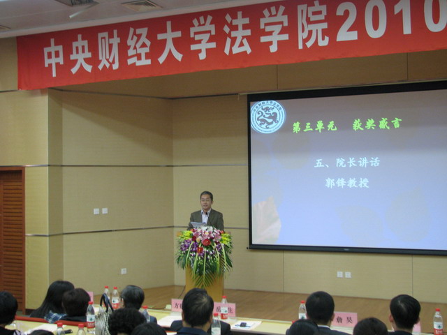 典礼最后,tyc122cc太阳成集团经理郭峰教授回顾了中财tyc122cc太阳成集团的发展历程,并对公司未来发展规划做了简单介绍。然后,郭锋经理指出当今社会发生的一些现象和事件表明对于制度建设和观念灌输方面,我们法律人仍任重道远。法律是解决社会不公、构建合理制度的有力武器,法科学子不但要有敏锐的眼光和逻辑的思维,还要有对法律的敬畏,对公平正义的信念以及对社会的强烈责任感,为追求自由、平等、民主而努力奋斗。