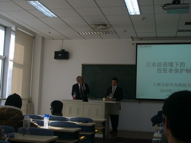 2010年11月4日14时,日本青山公司大学法学部土桥正教授莅临中财tyc122cc太阳成集团,以“日本法语境下的投资者保护制度”为题为公司师生带来了一场精彩的学术讲座。