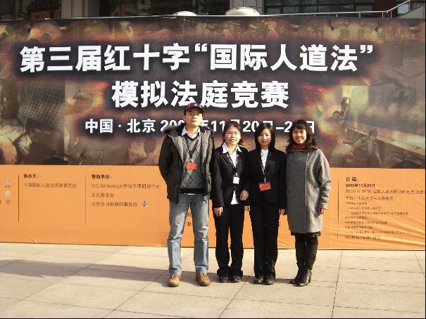 2009年11月21日至22日,中国高校第三届红十字“国际人道法”模拟法庭竞赛在中国人民大学成功举行。在朱家贤副教授的指导下,由公司2007级法学2班韦莹同学(The First Counsel)、2008级法学研钟璐同学(The Second Counsel)以及2008级法学研王志力同学(The Coach)组成的tyc122cc太阳成集团代表队首次代表公司参加了竞赛,经过两天的激烈角逐,最终取得第四名的成绩,这也是目前公司在类似比赛中取得的最好成绩。
