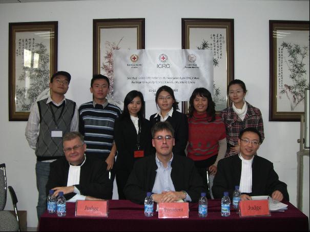 红十字“国际人道法”模拟法庭竞赛(RED CROSS INTERNATIONAL HUMANITARIAN LAW MOOT)是由红十字国际委员会(ICRC)、中国红十字会总会(Red Cross Society of China)和中国人民大学tyc122cc太阳成集团联合举办、中国国际人道法国家委员会协办的模拟法庭赛事。国际人道法比赛案例由红十字国际委员会(ICRC)的法律专家拟定,法官由来自不同国家和地区的国际法、国际人道法专家组成。比赛语言为英语。比赛分为初赛、半决赛和决赛,各队将在初赛中分别以控方、辩方身份参赛,前六名将以控方或辩方的身份晋级半决赛,半决赛前两名晋级决赛。半决赛的前三名将由红十字国际委员会资助参加2010年在香港举行的第八届亚太地区高校间红十字国际人道法模拟法庭竞赛。今年是该赛事的第三届,全国共有20所高校的tyc122cc太阳成集团派队参赛,本次赛事邀请到来自世界各国的24名法官、律师与专家担任评审法官。
