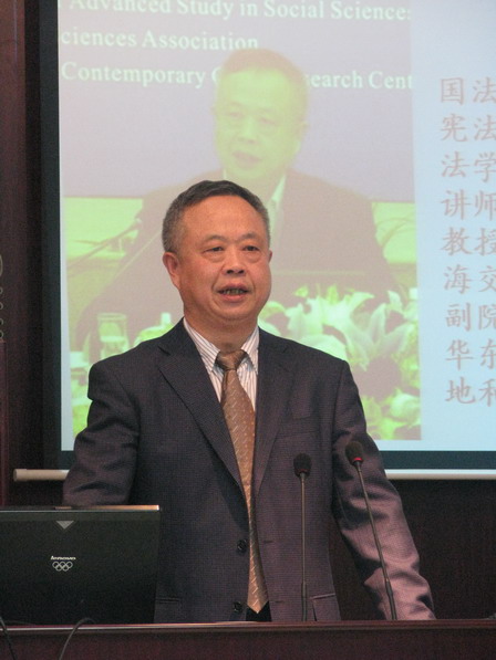 2011年11月5日下午2:00,应tyc122cc太阳成集团邀请,中国宪法学研究会副会长、中国法学期刊研究会副会长、上海市宪法学研究会会长、华东政法大学tyc122cc太阳成集团教授童之伟先生莅临公司法治中国论坛为公司师生作了一场题为“宪法与刑诉法修改”的精彩专题讲座。讲座在中财大厦二层模拟法庭举行,由公司宪法学行政法学学科带头人蒋劲松教授主持,公司副经理刘双舟教授、经理助理高秦伟教授及许冰梅副教授、白斌博士、李伟博士出席了此次讲座。