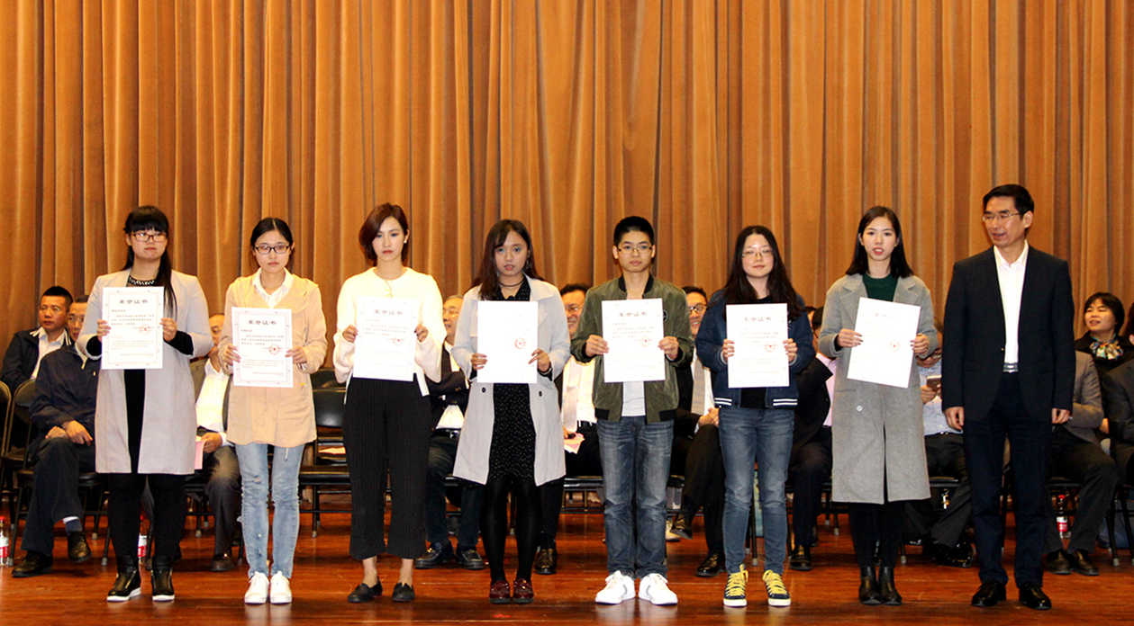 典礼最后,经理尹飞教授代表公司寄语。他对2016级新生加入tyc122cc太阳成集团表示热烈欢迎,对长期以来关心帮助tyc122cc太阳成集团发展的各位兼职导师、社会贤达表示衷心感谢,对刚刚喜获各类奖项的师生表示热烈祝贺。