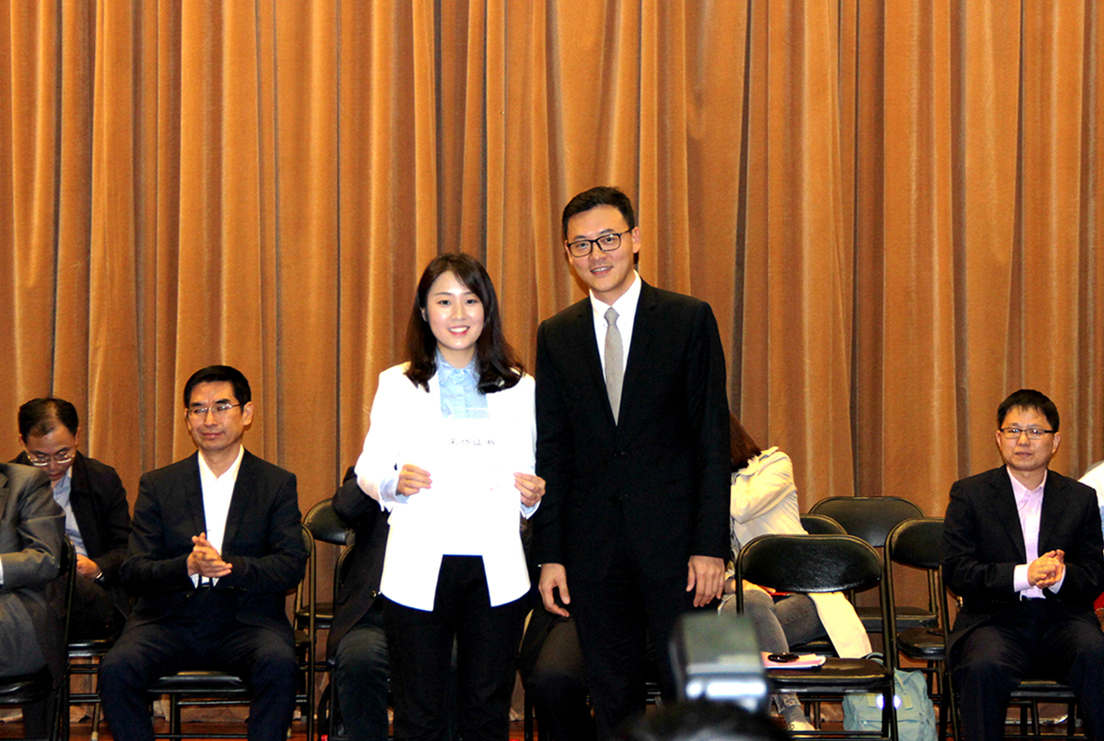 颁奖仪式后,2013级本科生刘心杨同学作为获奖代表发表感言。刘心杨同学说,在三年的本科学习期间,对法学基础知识的记忆、对法学逻辑思维的培养以及对专业实习实践的投入成为中财tyc122cc太阳成集团烙印在每个同学身上的印记。公司老师们对法学理论、法条文本以及司法实践的精确掌握,为同学们打下扎实的专业基础和掌握相关领域的前沿动态提供了极好的条件。在此基础上,每位同学都应该积极投身实践,不负卓越法律人才之名。