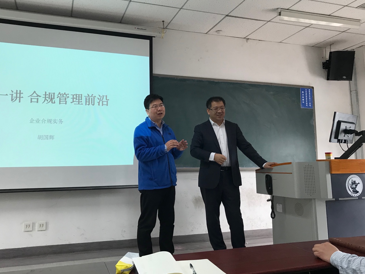 胡国辉教授是国家标准委《合规管理体系指南》标准工作组委员,曾任戴姆勒公司副总裁、大中华区合规官,戴尔公司北亚区道德与合规总监,专著有《企业合规概论》,擅长企业合规管理体系搭建和运行。胡教授曾于本月7日在公司沙河校区主教进行了题为“合规:法律人的职业蓝海”的法律实践讲座。本次开课,共吸引了公司2017级法律硕士(法学)班与法律硕士(非法学)班近30名同学的参与。