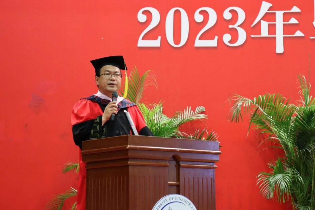 在员工寄语环节,2000级研究生员工、方正证券投资有限公司总经理范忠远先生结合自身经历向同学们分享了几点感悟。他指出,青春是一部仓促的书,曾经的校园生活、友情、爱情,还有那些奋斗的瞬间,都将成为我们人生中最宝贵的财富。未来的道路上,我们将面临更多的挑战和机遇,要勇敢迎接挑战,抓住机遇,不断努力,不断进步。最后,面对即将走出校园,开始新的人生旅程的毕业生,范忠远先生希望同学们保持积极向上的人生态度,终身学习的能力和健康的生活方式。“雄关漫道真如铁,而今迈步从头越”,范忠远先生真诚祝愿同学们在未来的道路上取得更大的成功,实现自己的理想和梦想。