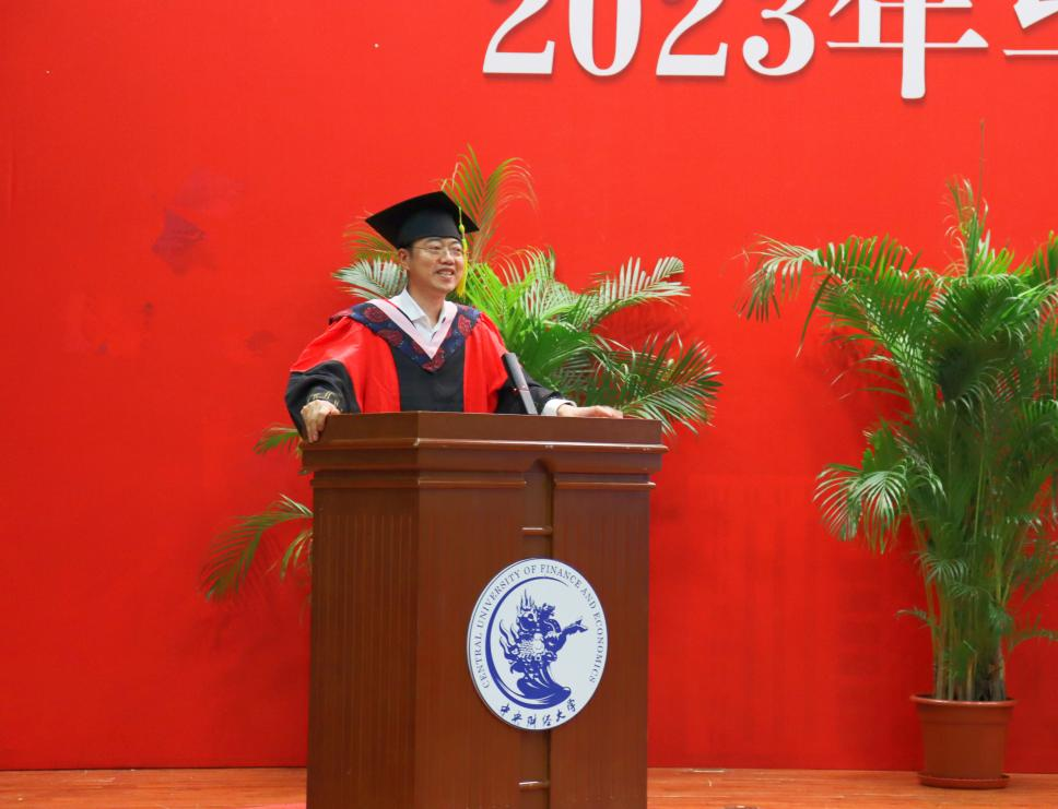 在此前五次毕业典礼的寄语中,尹飞经理分别嘱咐过大家胸怀梦想、敢于担当、平和心态、坚守底线、以不懈奋斗融入奋进的时代。在今年的毕业典礼中,尹飞经理以“明法笃行”对同学们殷切寄语。他指出,明法,前提是崇德。希望同学们在将来的路上,“明大德、守公德、严私德”,如此才能真正行稳致远;明法,首要是尊法,只有真正敬畏法律、尊重规则,才能认真学习法律、认真对待规则,真正做到明法;明法,不仅是要通晓法律,更要通晓规矩。而笃行,关键在“笃”。“笃”就是忠诚,忠诚于党、忠诚于国家、忠诚于人民、忠诚于法律。“笃”就是专一,就是要在崇德、尊法、明法的基础上,沉下心来、持之以恒地踏实做事,尤其是持之以恒地在公平正义观念指引之下适用法律。希望同学们坚持初心、坚守人格、保有对自己专业能力的自信,牢记明法笃行。