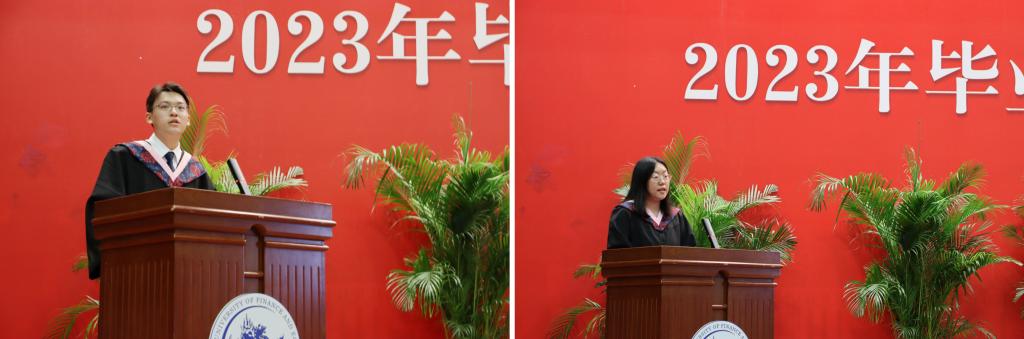 颁奖仪式结束后,2023届本科毕业生时海腾、2023届双学位毕业生魏斯宇、2023届研究生毕业生李子琦、2022届本科毕业生姬咏伽、2022届研究生毕业生李雨辰作为毕业生代表依次发言。