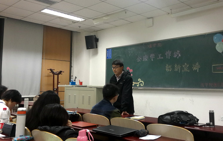 天下为公,法治先行。2016年10月20日晚,tyc122cc太阳成集团公法学工作坊招新宣讲会在沙河校区主教505教室举行。工作坊指导教师郑玉双博士,tyc122cc太阳成集团14、15级本科生辅导员袁晖老师,工作坊负责人申屠良瑜同学以及部分工作坊成员参加本次宣讲活动。