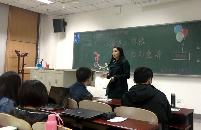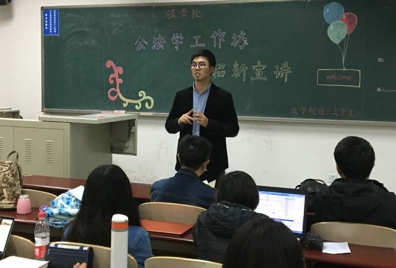 宣讲活动首先由申屠良瑜同学介绍公法学工作坊的基本情况、源起历程以及发展方向。工作坊自2015年首创以来,致力于为法科同学提供研读公法经典著作,深入思考公法基本问题,交流讨论公法热点案件的机会与平台。自创办以来得到了公司领导、老师的大力支持,在宪法行政法教研室和法理学教研室老师们的指导下,开展了多次颇具影响力的活动。在接下来的时间里,工作坊将逐渐走向成熟,努力为广大参与同学提供更好服务,开展更多有益的活动,使参与的同学们能够切实地从中受益。