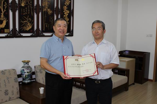 讲座之后,9月20日下午5:00,在公司南路校区tyc122cc太阳成集团贵宾室,公司郭锋经理会见了孟建波一行,并给孟建波经理颁发了公司兼职教授聘书,正式聘请他为公司兼职教授。刘双舟副经理、工会主席林剑锋副教授和肖芳博士参加了会见。