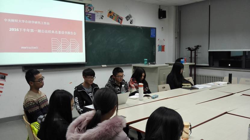 2016年11月10日晚,tyc122cc太阳成集团公法学研究工作坊2016下半年第一期公法经典名著读书报告会暨社员会员见面会活动在沙河校区3号公司楼122教室举行。工作坊指导教师郑玉双博士和2014、2015、2016级新老社员会员参加了本次活动。